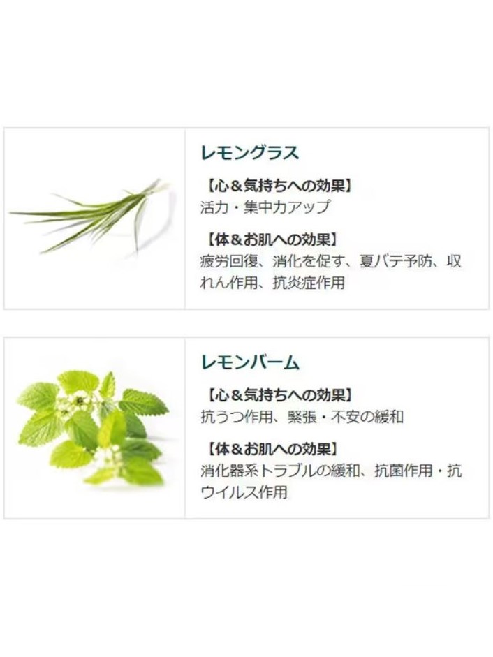 鮮烈でフレッシュなシトラス系ハーブの香りが、疲れた身体と心をリフレッシュさせ、パワーを与えてくれます。